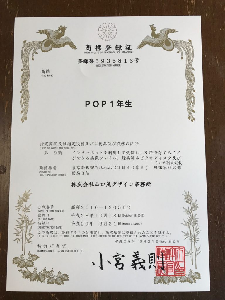 「POP1年生」は「POP1年生®」になりました!!!(*^^)v