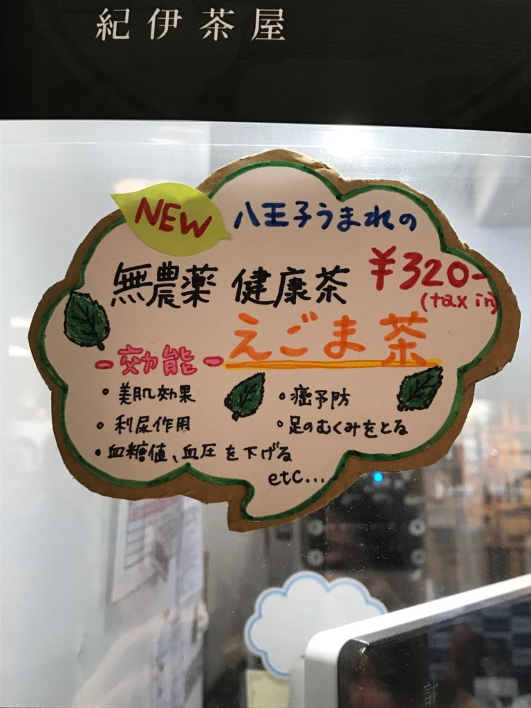 無農薬のえごま茶のPOPや