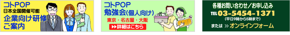 「コトPOP企業向け研修」へのお問い合わせ/お申し込みは |