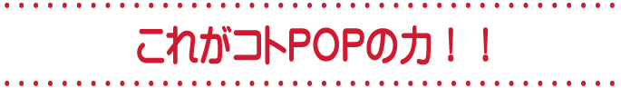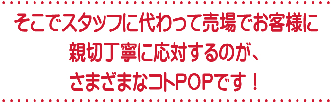 売場におけるコトPOPの役割はとりわけ重く、効果がきわめて高いツールなのです。