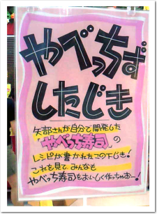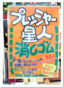 それは毎年お台場で開かれていた、フジテレビ夏のイベント・お台場冒険王のめちゃ×2イケてるッ!ブースで「やっぱり販促には手書きPOPが絶対必要!!」という中嶋プロデューサーの命を受け、インターネットでPOPの学校を探し当てた当時のAD東中川君からの、手書きPOP制作依頼だったのだ。