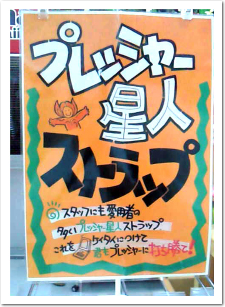 作品を受け取り早朝から会場入りした校長は、若いスタッフや中嶋プロデューサーと一緒に駆け廻りながら、手書きPOPの取り付けを行った。そして全ての作業が終了したのが10時のオープン1分前!!その結果、この年のめちゃ×2イケてるッ!ブースの売り上げは大幅にアップ!昨年は担当ADがプレッシャー星人の玉乗りのお手伝いで有名な鎌田君に代わったけれどお付き合いが続いている。
