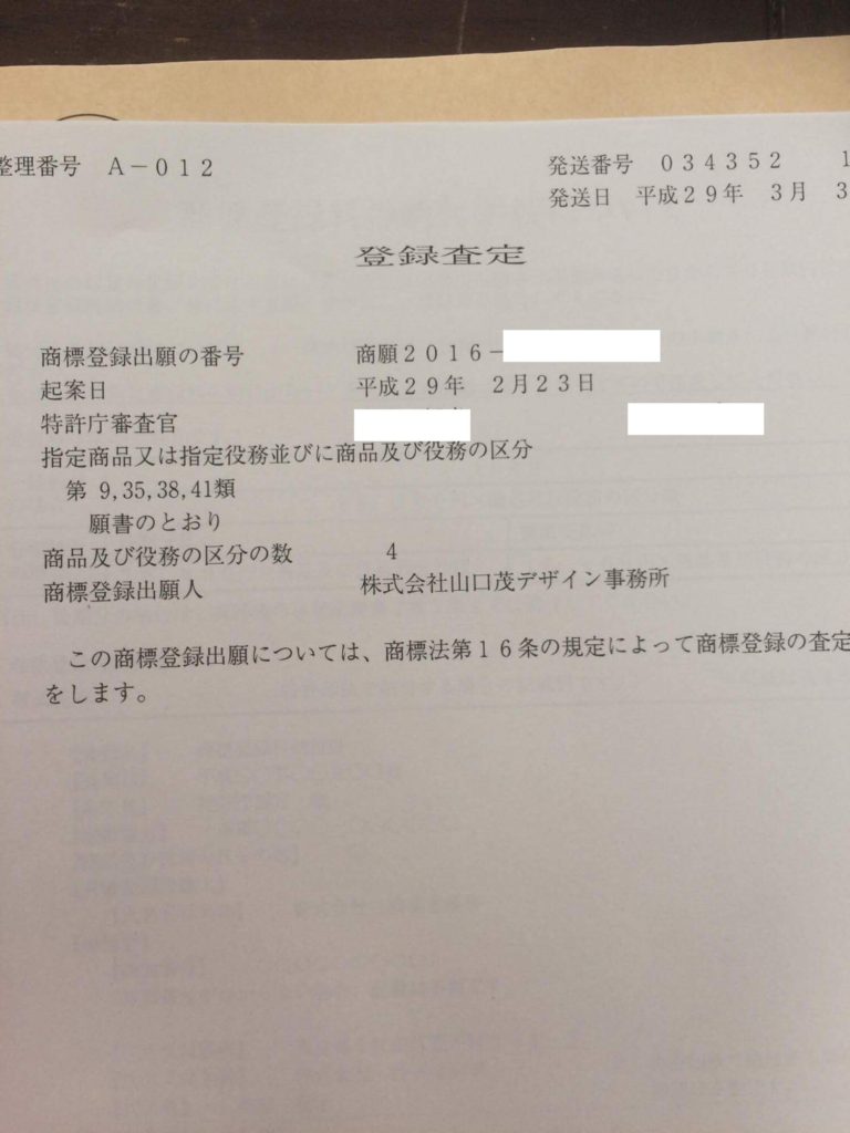 昨年の秋に特許庁に商標登録の