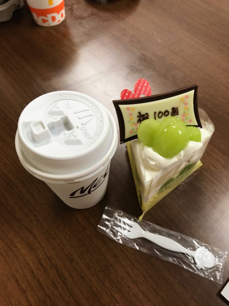 ショートケーキ、100回記念プレート乗せです(^^♪